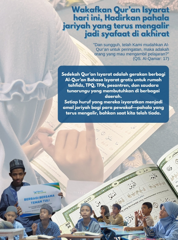 Alhamdulillah, hingga hari ini Bantubersama telah menyalurkan lebih dari 1.500 Al-Qur’an Bahasa Isyarat. Setiap mushaf yang sampai menjadi jembatan cahaya bagi teman-teman tuli untuk lebih dekat dengan Kalamullah.