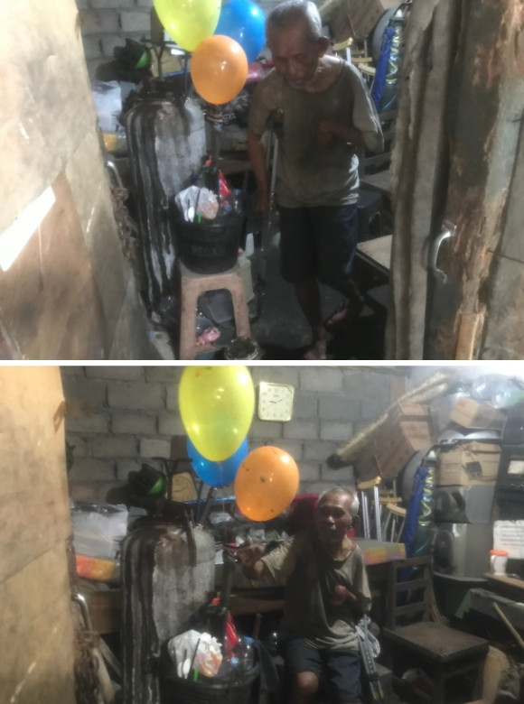 Setiap sore hingga malam hari, sekitar pukul 17.00–22.00, Mbah Gayeng berjualan balon seharga Rp5.000 per buah. Penghasilannya sangat tidak menentu dan sering kali tidak cukup untuk memenuhi kebutuhan makan dan obat. Saat ini dia tinggal bersama anak dan cucunya di rumah kontrakan sederhana berlantai tanah dengan biaya sewa mencapai Rp9 juta per tahun, sementara kondisi ekonomi keluarga juga serba terbatas.