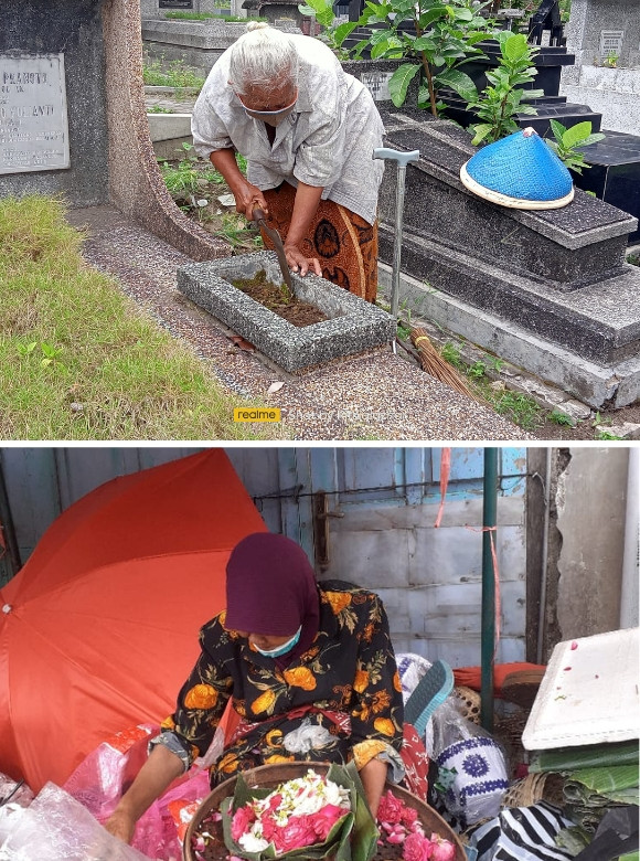Mbah Kaliyem (70) dan Mbah Ponijah (75) adalah dua lansia bersaudara yang sama-sama ditinggal wafat suami. Di usia yang tak lagi muda, mereka hidup berdua saling menguatkan. Anak-anak telah berkeluarga dan kondisi ekonominya pun pas-pasan. Untuk makan sehari-hari, Mbah Kaliyem berjualan bunga nyekar, sementara Mbah Ponijah membersihkan makam dengan bayaran seikhlasnya peziarah.