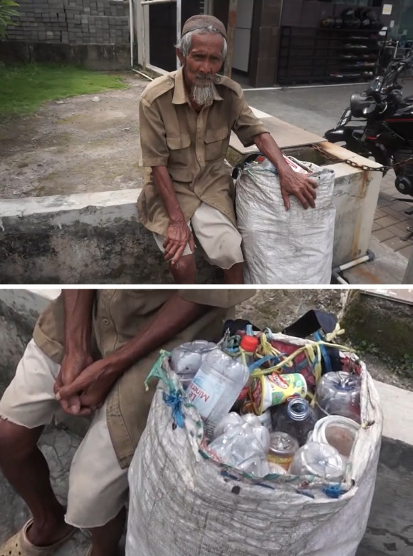 Di usianya yang telah menginjak 75 tahun, Abah Sutikno masih memanggul karung besar berisi rongsokan, berjalan lebih dari 20 kilometer setiap hari. Karung itu ia bentuk seperti tas di punggungnya, diisi botol plastik, gelas bekas, dan kardus yang ia kumpulkan dari tempat sampah dan pinggir jalan. Langkahnya pelan, tubuhnya renta, tapi Abah terus berjalan karena hanya itu cara yang ia punya untuk bertahan hidup.