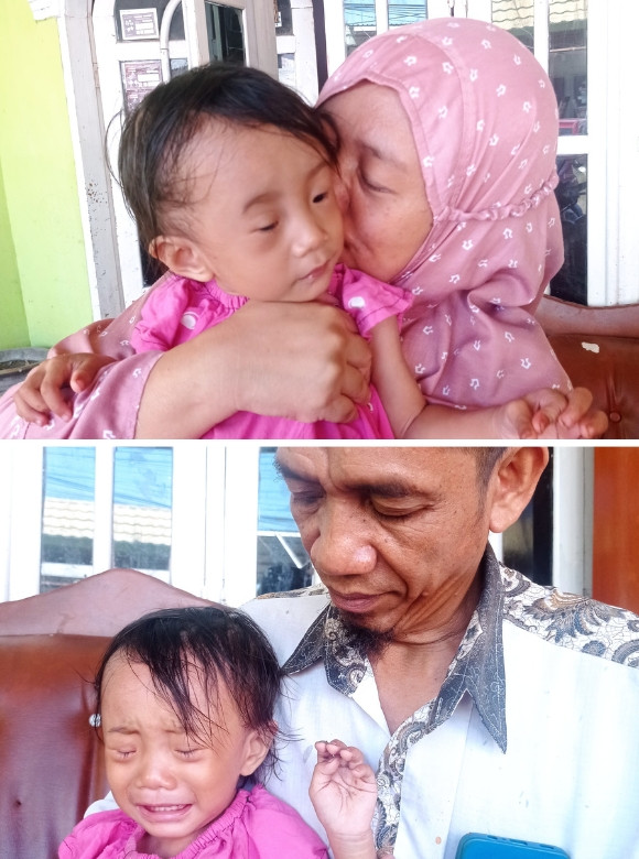 Sejak lahir, Nur Aisyah Hamid Ibrahim mengalami kondisi mata yang tertutup dan dipenuhi kotoran, membuatnya nyeri setiap kali menangis dan membatasi jangkauan pandangnya. Meski ibunya dengan sepenuh hati membersihkan mata dan memberikan obat tetes, kondisi ini tidak akan sembuh tanpa tindakan operasi. Adik Aisyah telah menjalani pengobatan di RS Otanaha dan RS Kandou Manado sebanyak lima kali bolak-balik, namun biaya pengobatan masih menjadi kendala besar bagi keluarganya.