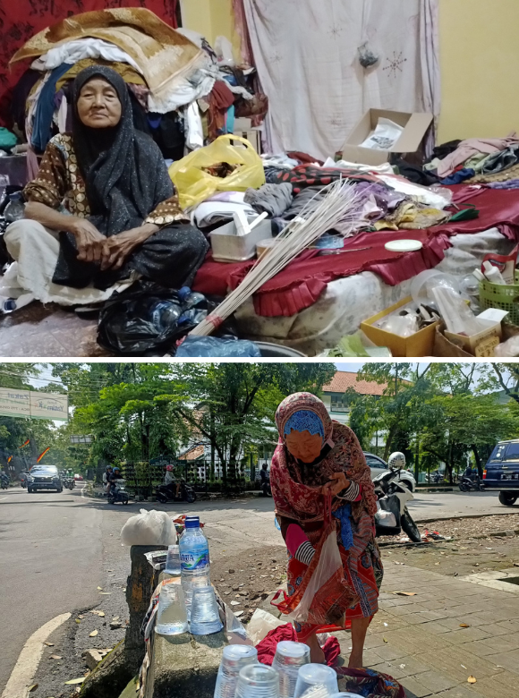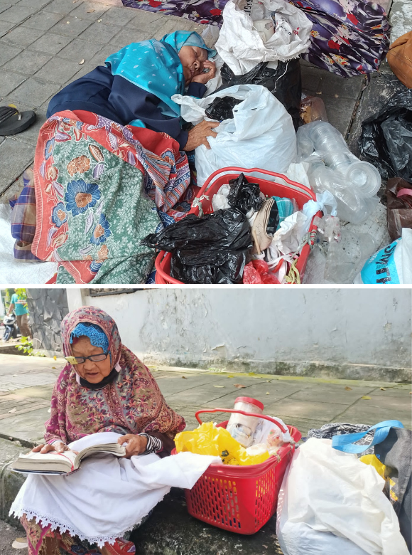 “Daripada bengong, mending Mak baca Al-Qur’an… Mak doain suami, anak, orang yang pernah nolong, bahkan yang pernah jahatin Mak juga.” Begitulah keseharian Mak Romlah (86 tahun) di tepi jalan. Di usia senjanya, ia masih harus berjualan barang seadanya seperti mie instan, kopi, dan air mineral, meski penghasilan per harinya tak lebih dari 10 ribu rupiah. Barang dagangannya hanya ditata di atas batu pembatas jalan. Saat mengantuk dan tertidur, sering kali ada saja yang mengambil jualannya tanpa membayar. Tapi Mak Romlah tak pernah mengeluh. Ia tetap duduk tenang sambil membaca Al-Qur’an, menata dagangan, dan berharap ada pembeli yang mampir.