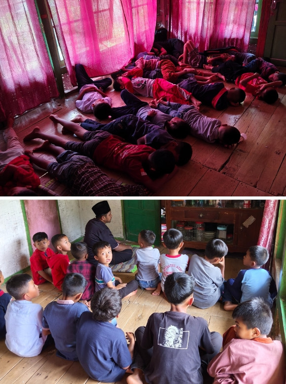Setiap hari, santri-santri kecil itu mengaji di ruangan yang sangat sempit tanpa meja, kursi, atau perlengkapan belajar. Lantainya menjadi alas duduk, sementara panas dan hujan sering mengganggu kegiatan mengaji. Pak Sudirman bercerita bahwa beberapa santri seringkali berhenti sejenak karena gerah, atau bahkan memindahkan posisi duduk karena bocor dari atap. Meski serba terbatas, semangat mereka tidak pernah padam.