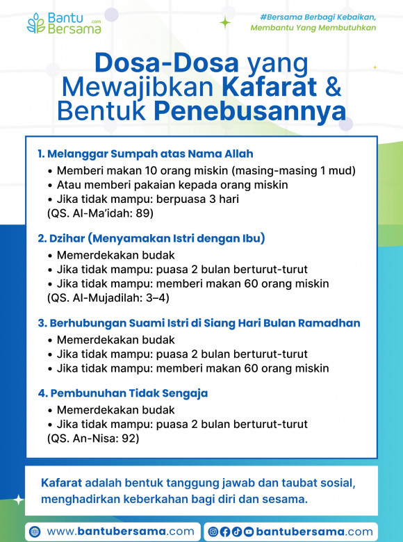 Kafarat adalah bentuk tanggung jawab dan penebus atas pelanggaran tertentu dalam ibadah, yang diwujudkan melalui kepedulian kepada sesama. Dalam Islam, kafarat tidak hanya bernilai sebagai pemenuhan kewajiban pribadi, tetapi juga menjadi sarana berbagi kepada fakir miskin dan kaum dhuafa yang membutuhkan.