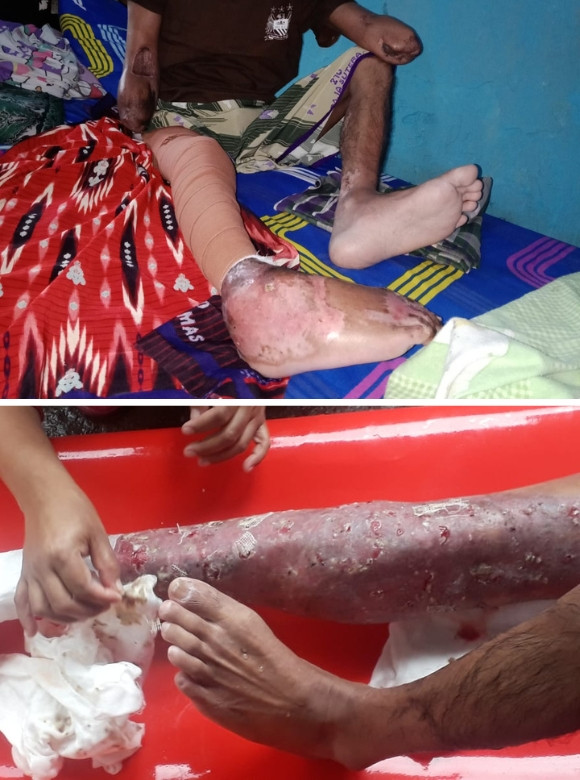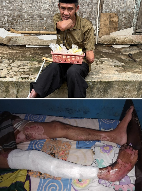 Pak Dede mengalami luka bakar parah di tangan dan kaki akibat sengatan listrik tegangan tinggi. Ia sempat mendapatkan perawatan di rumah sakit, namun harus pulang lebih awal karena keterbatasan biaya. Kondisinya semakin memburuk ketika luka bakarnya robek dan membusuk hingga mengeluarkan belatung. Dokter akhirnya mengambil keputusan berat: kedua tangan Pak Dede harus diamputasi demi menyelamatkan nyawanya. Kini, Pak Dede hidup tanpa kedua tangan, dengan kondisi kaki yang dipatenkan karena luka bakar masih terus mengeluarkan darah dan nanah.